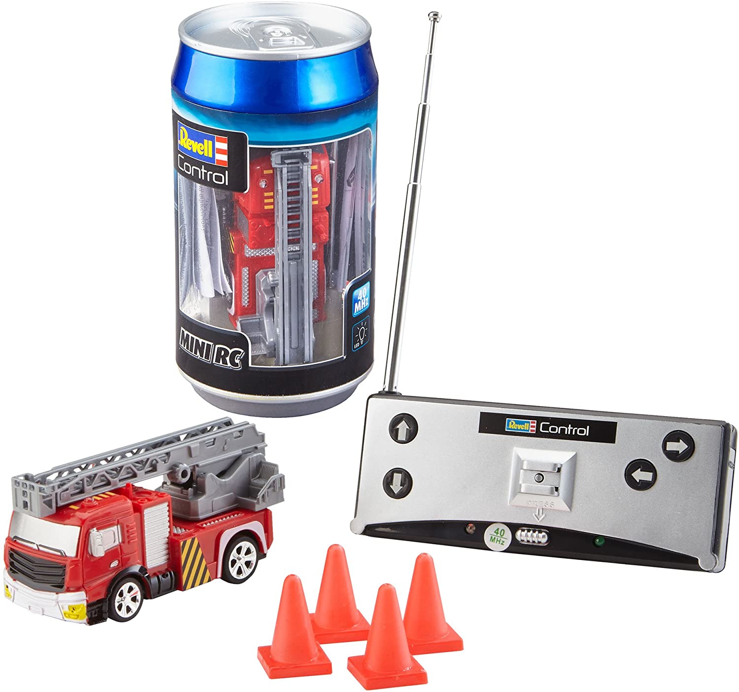 | Name | Revell Control 23558 Mini RC Car Feuerwehr aus der Dose mit 40MHz-Fernsteuerung inkl. Ladefunktion, LED-Licht, kurze Ladezeit, lange Fahrzeit 8 kleines ferngesteuertes Auto, Fire Truck, Multicolour |