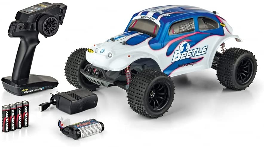 | Name | CARSON 500404142 - 1:10 VW Beetle FE 2.4GHz 100% RTR, Ferngesteuertes Auto/ Fahrzeug, RC-Fahrzeug, inkl. Batterien und Fernsteuerung, 2 WD, bedruckte Karosserie, Anleitung, Off Road Truggy |