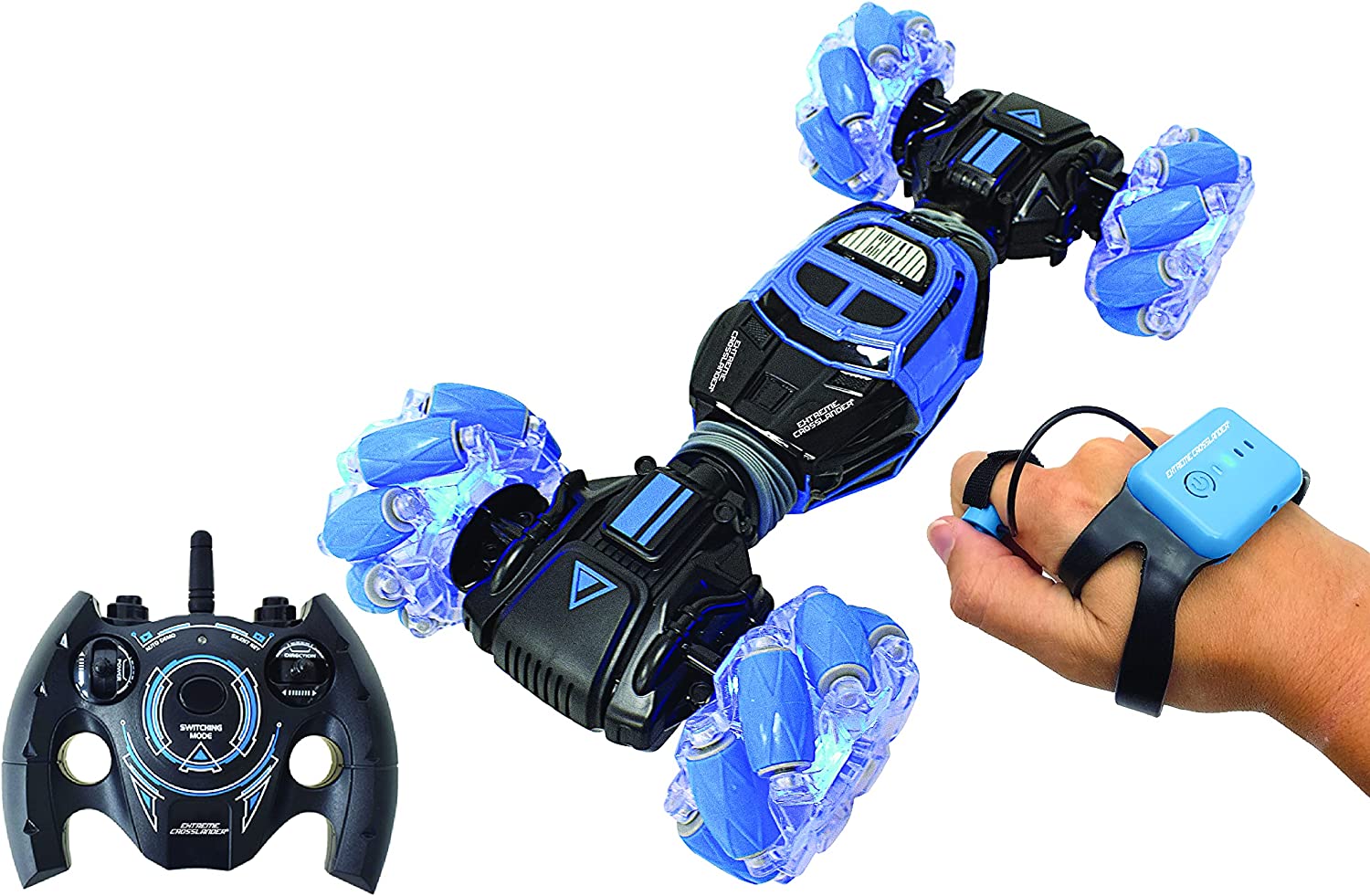 | Beschreibung | 2 Steuerungsmodi: mit der Fernbedienung oder mit dem Gestensteuerungsarmband! Gestensteuerung: Das Auto bewegt sich dank des im Armband integrierten Bewegungssensors vorwärts, rückwärts oder seitwärts. Demo-Modus für verrückte musikalische Stunts! |