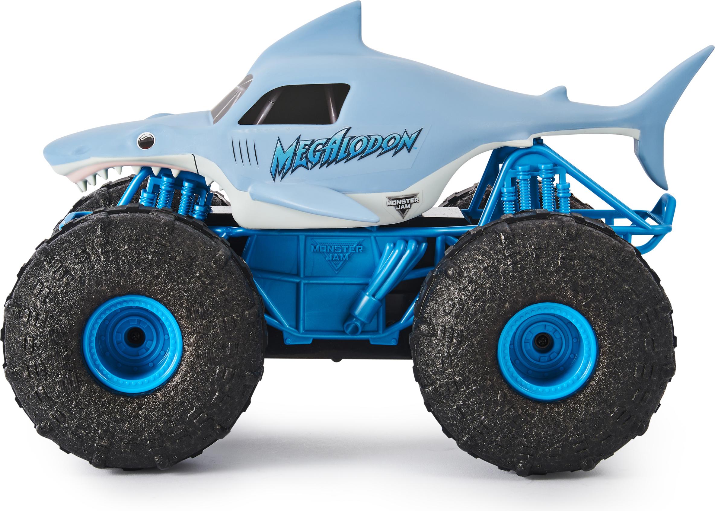 • Das ferngesteuerte Monster Jam Megalodon Storm Auto im Maßstab 1:15 bietet eine beeindruckende Leistung sowohl im Wasser als auch auf verschiedenen Geländen