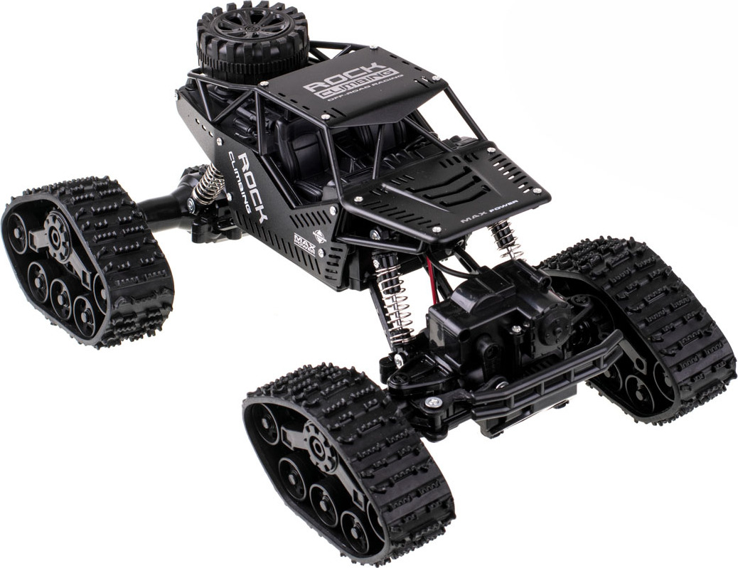 • Das Modell verfügt über Gummiketten und Gummireifen für vielseitiges Fahren