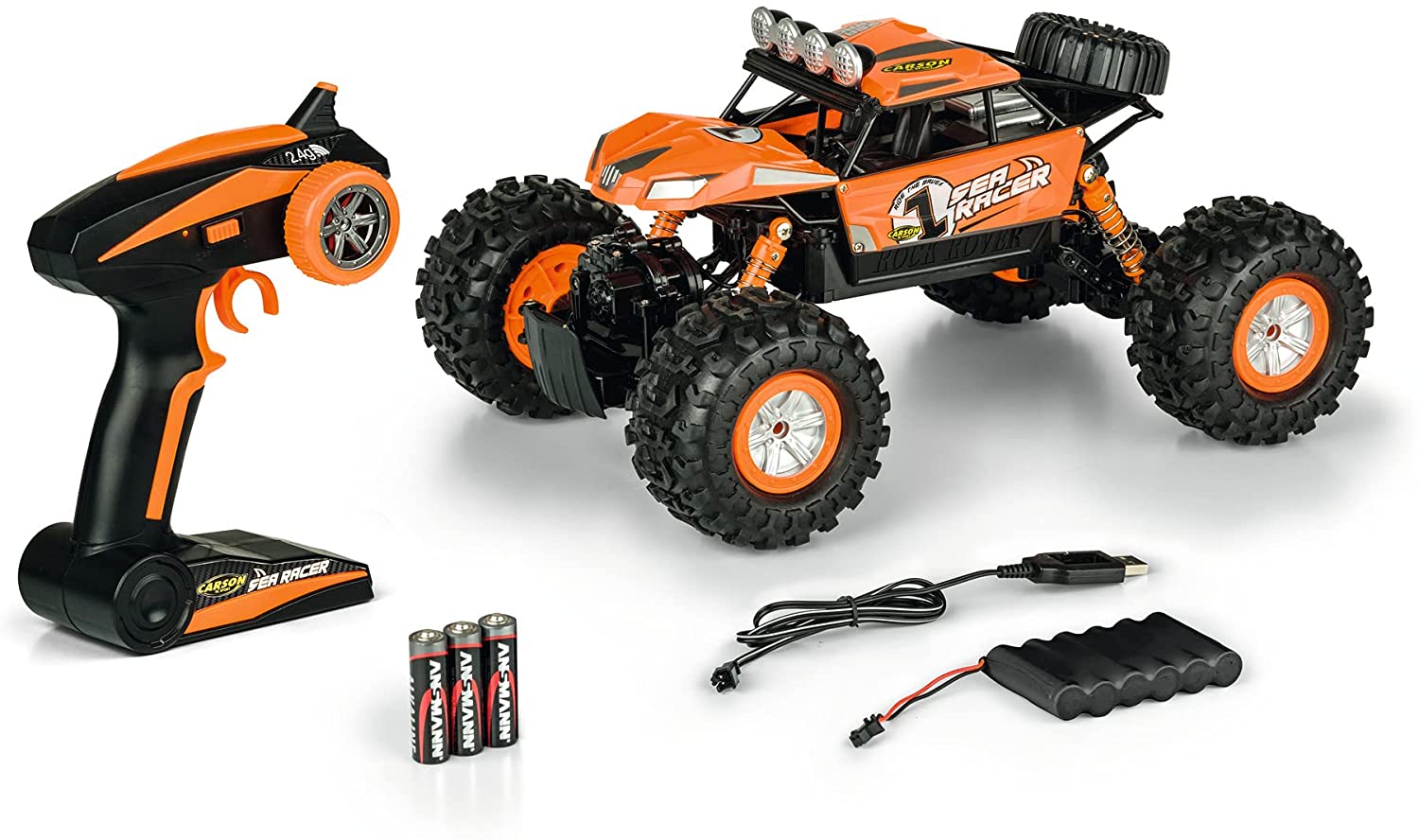| Name | Carson 500404138 Sea Racer 1:12 – RC-Auto als Amphibienfahrzeug, 100% RTR, für Land und Wasser, robust und wasserfest, mit 2.4G Fernsteuerung, Orange |