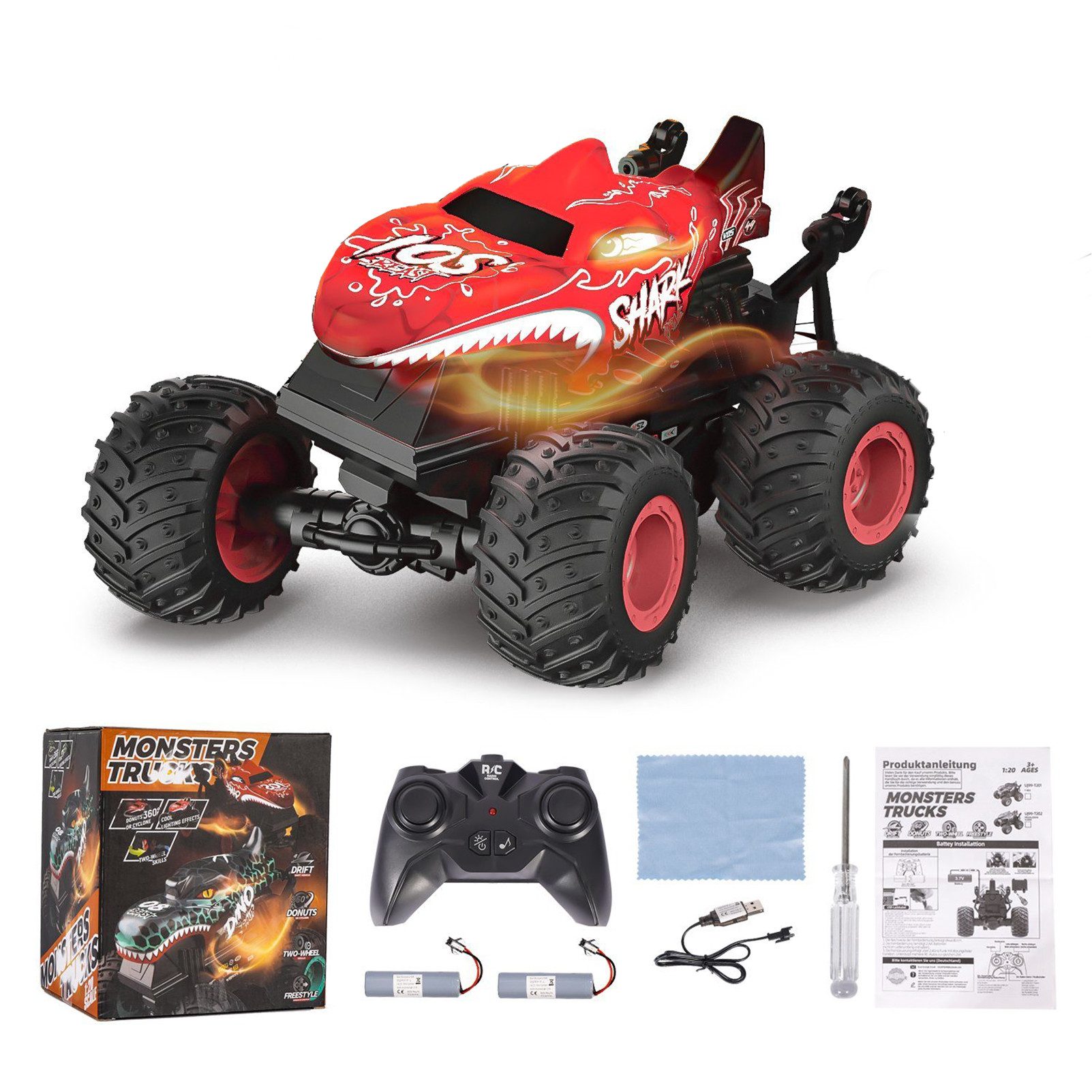 • Der Monstertruck kann epische Stunts wie aufrecht Gehen, 360°-Drehung und Drifts ausführen