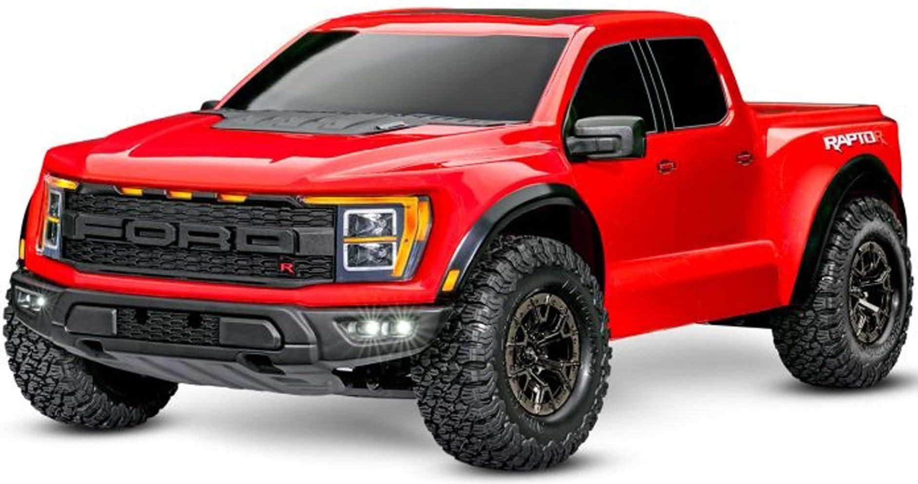 • Der Traxxas Ford Raptor R im Maßstab 1/10 fängt die Realität des 700-PS-V8-Originals ein und erreicht Geschwindigkeiten von über 100 km/h dank des Velineon® Brushless-Systems