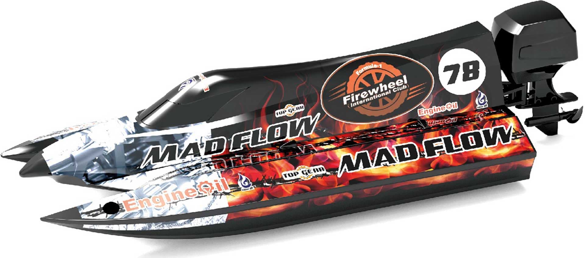 • Der Joysway Mad Flow Rennkatamaran besticht durch sein auffälliges Design und seine elegante Formgebung, die sowohl Piloten als auch Zuschauer begeistert