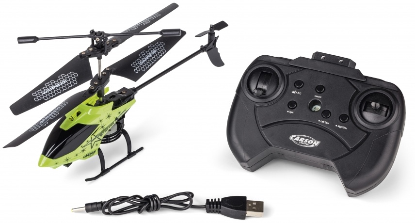 LED-Beleuchtung – Der ferngesteuerte Hubschrauber ist mit einer, über den Sender schaltbaren LED-Beleuchtung ausgestattet, dies erleichtert die Navigation und ermöglicht ein Fliegen auch bei Dämmerung. Ideal für Einsteieger – Mit dem CARSON Starter Tyrann 230 gelingt der Einstieg in die Welt der ferngesteuerten Helis garantiert. Der Indoor-Helikopter verfügt über eine Lenkungstrimmung und ist mit einer 2-Kanal-Infrarotfernsteuerung ausgestattet Lange Flugzeit – Geladen wird der Starter Tyrann ganz bequem per USB-Kabel, was dir satte 11 Minuten Flugzeit bringt und den Helikopter auf 10 km/h beschleunigt Lieferumfang – Flugfertiges Modell, Fernsteueranlage, Li Po Flugakku, USB-Ladegerät, Anleitung Erforderliches Zubehör: Mignon-Set (AA) 500609043 Original Carson Qualität – Als Spezialist für ferngesteuerte Helikopter ist Carson seit 25 Jahren ein Garant für herausragende Qualität, höchste Produktsicherheit und selbstverständlich für jede Menge Fahr- und Flugspaß!, Hersteller: CARSON