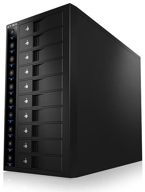 Das externe Gehäuse für 10x 3,5-Zoll-Festplatten von Icy Box bietet eine praktische Lösung für die Datenspeicherung. Mit insgesamt zehn Einschüben können Kunden viel Speicherplatz nutzen und dank des mitgelieferten Netzteils alle Laufwerke bequem betreiben. Das einfache Einschubkonzept mit beleuchteten Schaltern ermöglicht eine komfortable Bedienung, während der USB-3-Anschluss schnelle Datenübertragungen gewährleistet.