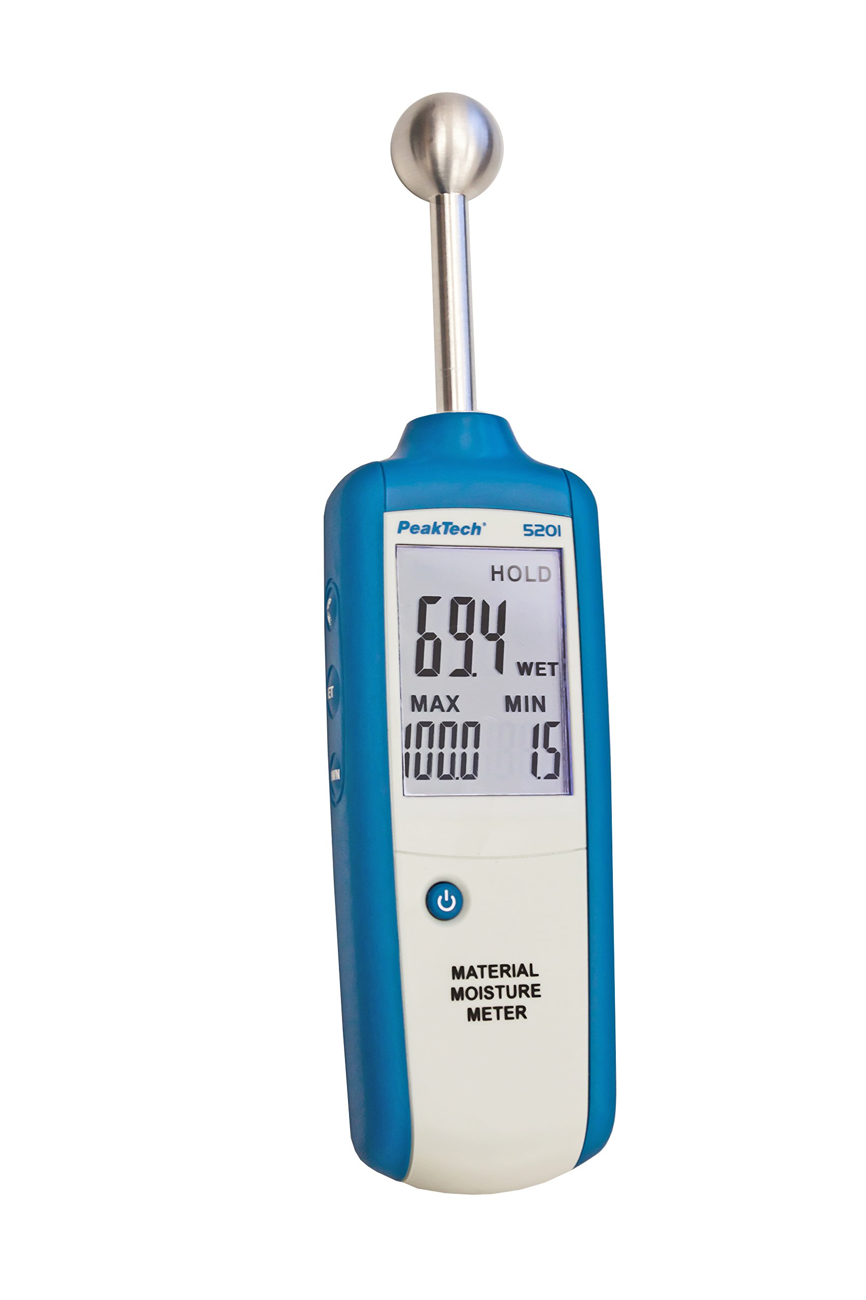 Der Feuchteindikator PeakTech 5201 bietet eine einfache Handhabung und zuverlässige Messwerte, wenn er korrekt angewendet wird. Das hochwertige und genaue Gerät ermöglicht vergleichbare Werte mit Profi-Geräten und verfügt über eine automatische Kalibrierung vor dem Messen.