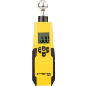 Materialfeuchtigkeitsmessung für Holz, Baustoffe, Beton und Estrich Calciumcarbid-Methode (CM) zur Restfeuchtemessung bei dampfdichten Belägen wie Estrich Zerstörungsfreie Messmethode durch Integrierten Sensor und Messkugel Durch das kapazitive Messverfahren werden die Messobjekte nicht beschädigt Lange Sonde für schwer erreichbare Messstellen Für berührungslose Messung bis zu 40 mm Tiefe Feuchtigkeitsbestimmung von 0 bis 100 % LC-Display mit Hintergrundbeleuchtung Hold-Funktion zur Fixierung des aktuellen Messwertes Robustes und ergonomisch geformtes Gehäuse Automatische Abschaltung ---------------------------------------- Merkmale: geeignet für: Holz, Baustoffe, Estrich, Beton, Böden, Wände Messtiefe bis: 40mm Messverfahren: kapazitiv, zerstörungsfrei Display: beleuchtet ---------------------------------------- weitere Produktinformationen: Messbereich: 0 bis 100 % Auflösung: 0,1 Stromversorgung: 1x Batterie (9V Block) Maße: (LxBxH) 19 x 5,5 x 3,2 cm Gewicht: 180 g Lieferung: inkl. Batterien