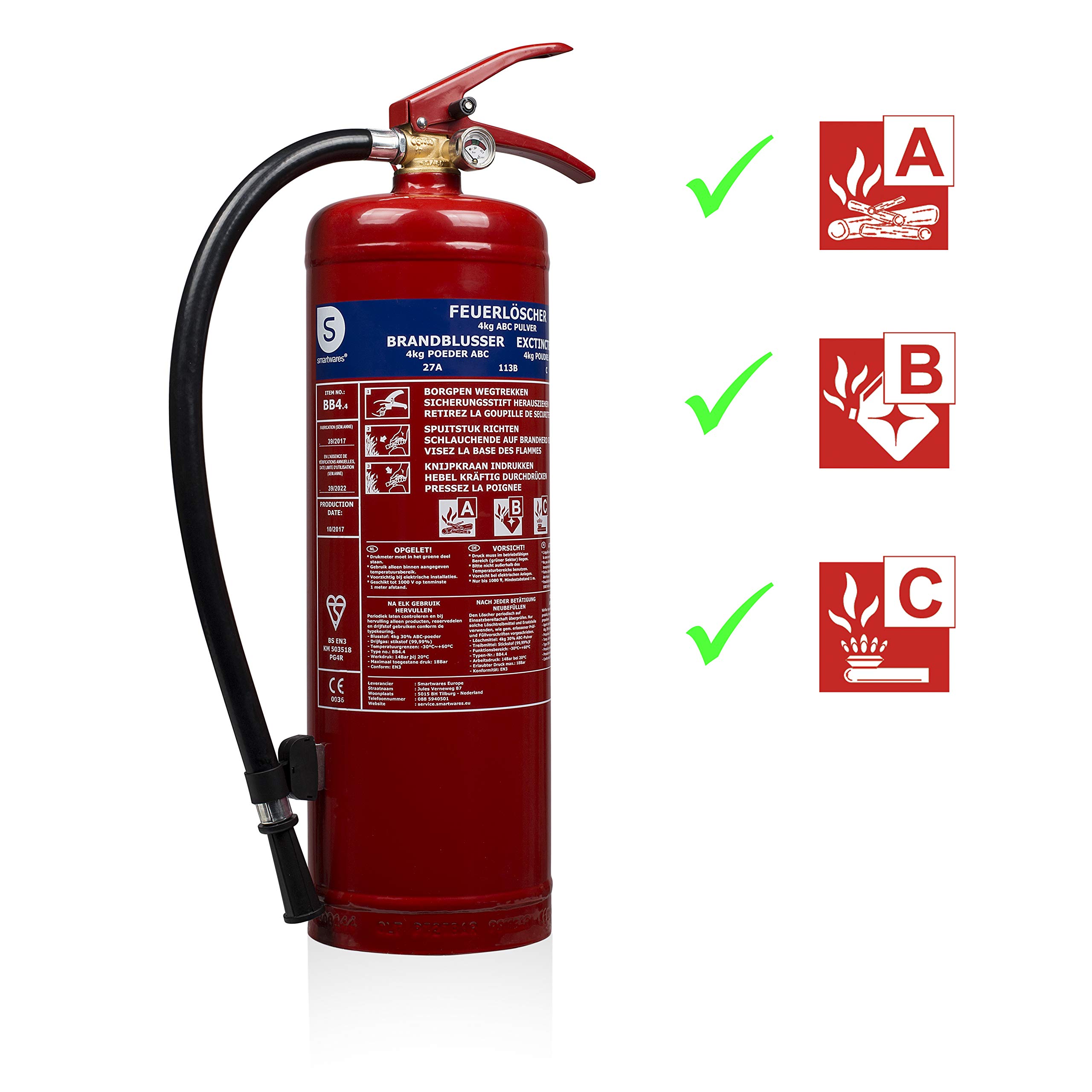 Bietet vielseitigen Brandschutz für A, B und C mit handlicher 4 kg Bauweise.