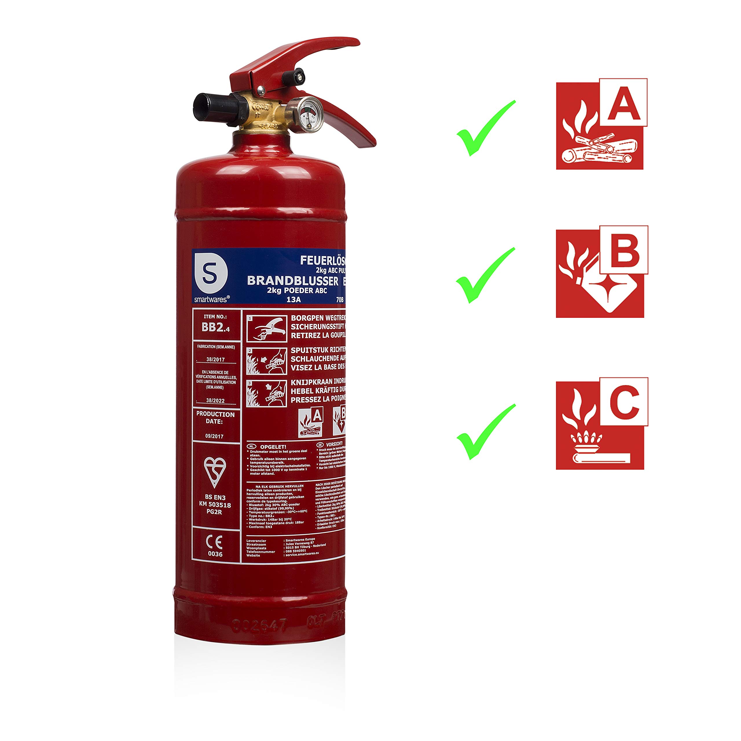 Der Smartwares ABC Feuerlöscher ist ein zuverlässiger Partner im Ernstfall. Mit einem Gewicht von 2 Kilogramm und dem effektiven Pulverlöschmittel kann er schnell und einfach Brände der Klassen A, B und C löschen. Dank mitgelieferter Halterung lässt sich der Löscher mühelos an einer Wand befestigen und bleibt so immer griffbereit zur Stelle.