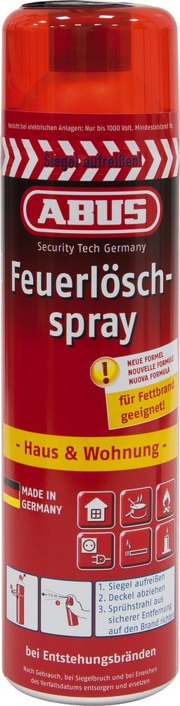 Das Abus Feuerlöschspray FLS580 Home ist ein kompaktes und einfach zu bedienendes Löschmittel, das sich besonders für den Einsatz im Privathaushalt eignet. Es kann bei verschiedenen Brandarten eingesetzt werden und verursacht dabei weniger Schäden als herkömmliche Feuerlöscher. Die Spraydose ist handlich und ermöglicht eine Anwendung aus sicherer Entfernung.