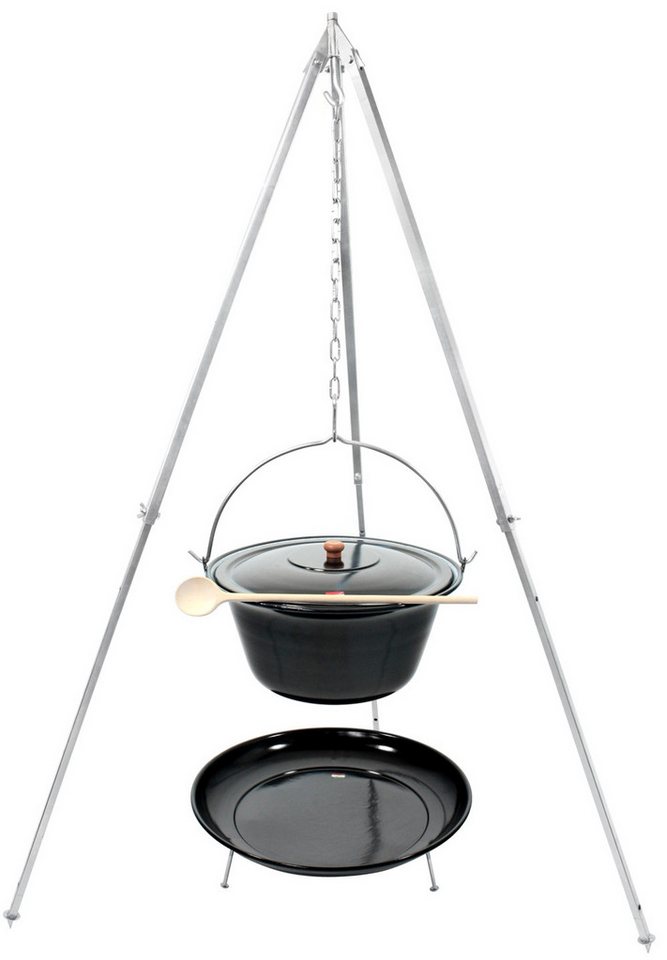 Grillplanet Holzkohlegrill Gulaschkessel 22 LDreibein 160, Feuerstelle Hoztlöffel Deckel, Set, emailliert