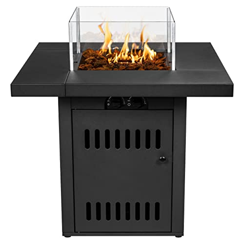 Meateor Ambiente Feuertisch CubeQuadratischer Gasfeuertisch mit Spezialglasumrandung, inkl. Lavasteine, Schwarz