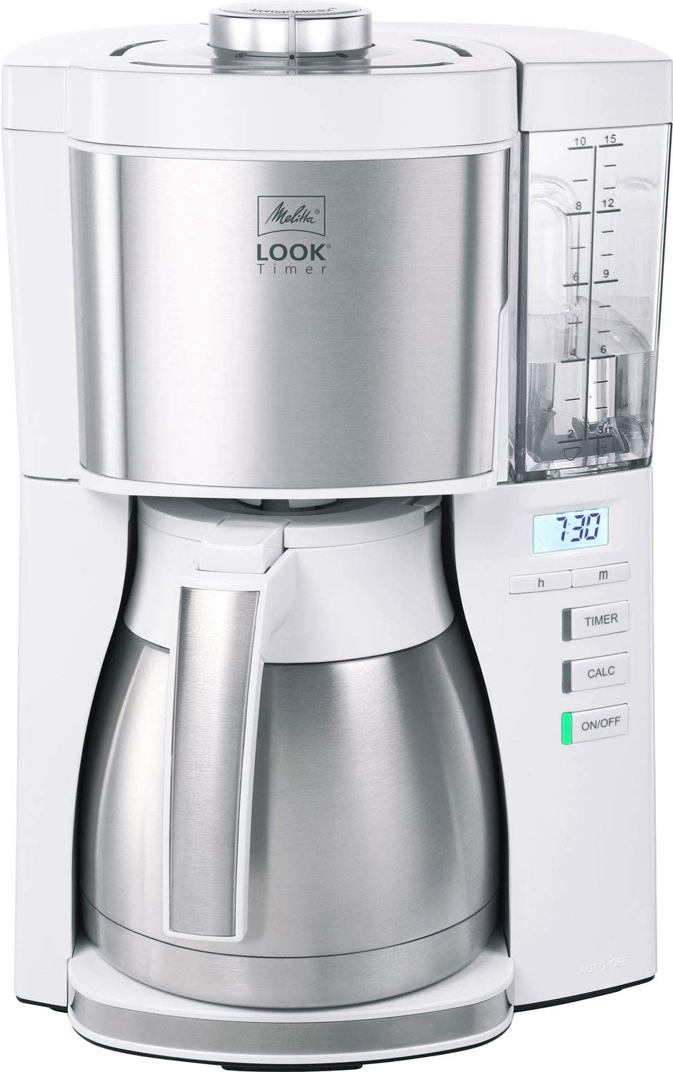 Die Melitta Look V Therm Timer 1025-17 Filterkaffeemaschine ist ein praktisches Haushaltsgerät für alle Kaffeeliebhaber. Mit dieser Maschine können Sie den Kaffee am Vorabend zubereiten und ihn dann zu einem von Ihnen bestimmten Zeitpunkt genießen. Die einfache Handhabung und die Möglichkeit des einfachen Reinigens machen diese Maschine besonders attraktiv.