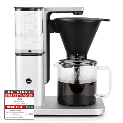 Die Zense Alux CM10APA-M125 von Wilfa überzeugt laut der Testerinnen und Tester von ETM Testmagazin durch ihre exzellente Gesamtleistung, das hochwertige Design und die überzeugende Materialwahl. Sie gilt als eine der besten Maschinen im Vergleich, wenngleich auf Komfortfunktionen wie einen Timer verzichtet wurde. – zusammengefasst durch die Testsieger.de-Redaktion