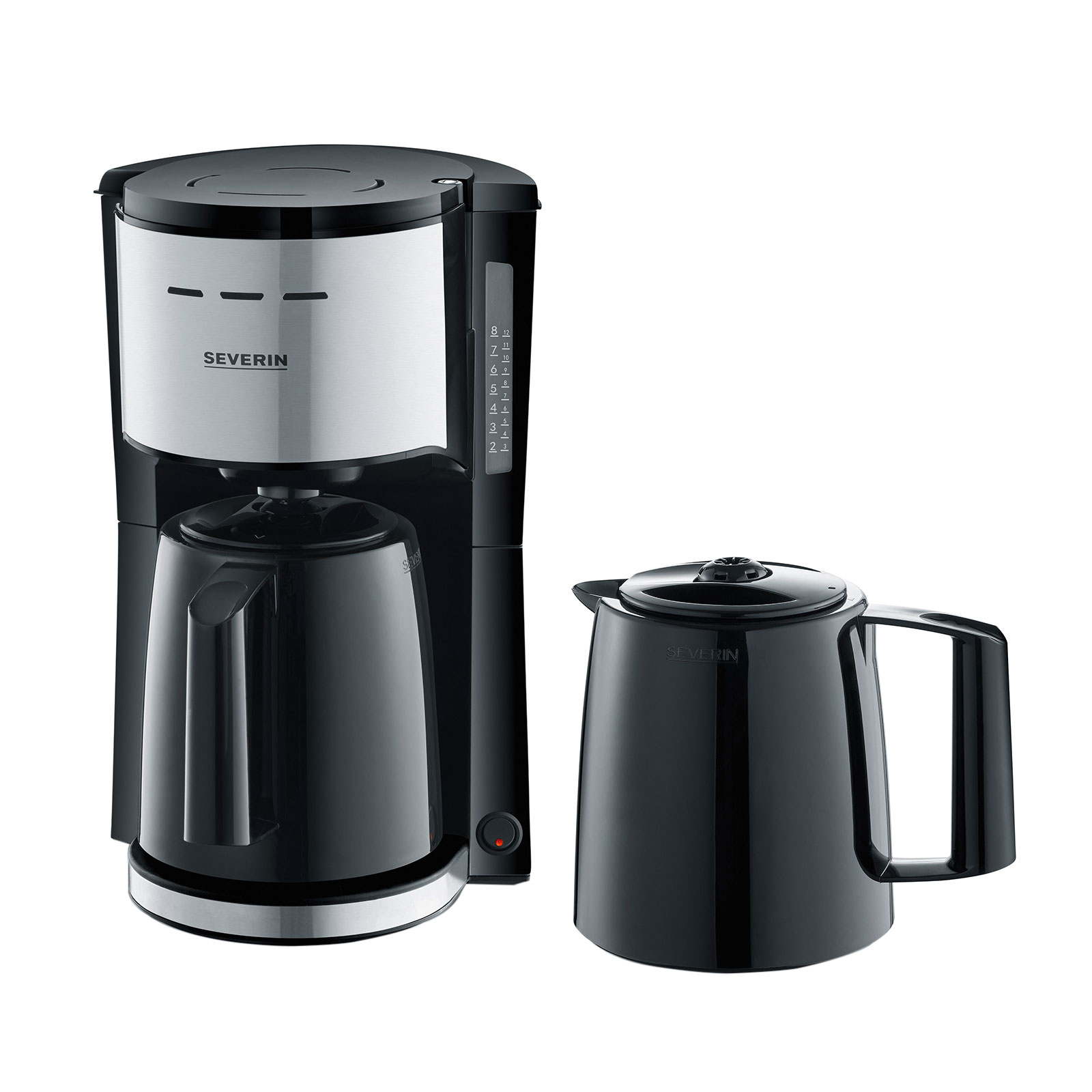 Die SEVERIN Filterkaffeemaschine mit 2 Thermokannen bietet die praktische Möglichkeit, heißen Kaffee schnell und einfach zuzubereiten. Mit ihrem handlichen und kompakten Design passt sie in jede Küche und überzeugt durch das schnelle Durchlaufen des Kaffees, sodass man nicht lange auf den Genuss warten muss. Die zwei Thermokannen sorgen dafür, dass der Kaffee lange heiß bleibt, was besonders für Haushalte oder Büros von Vorteil ist.