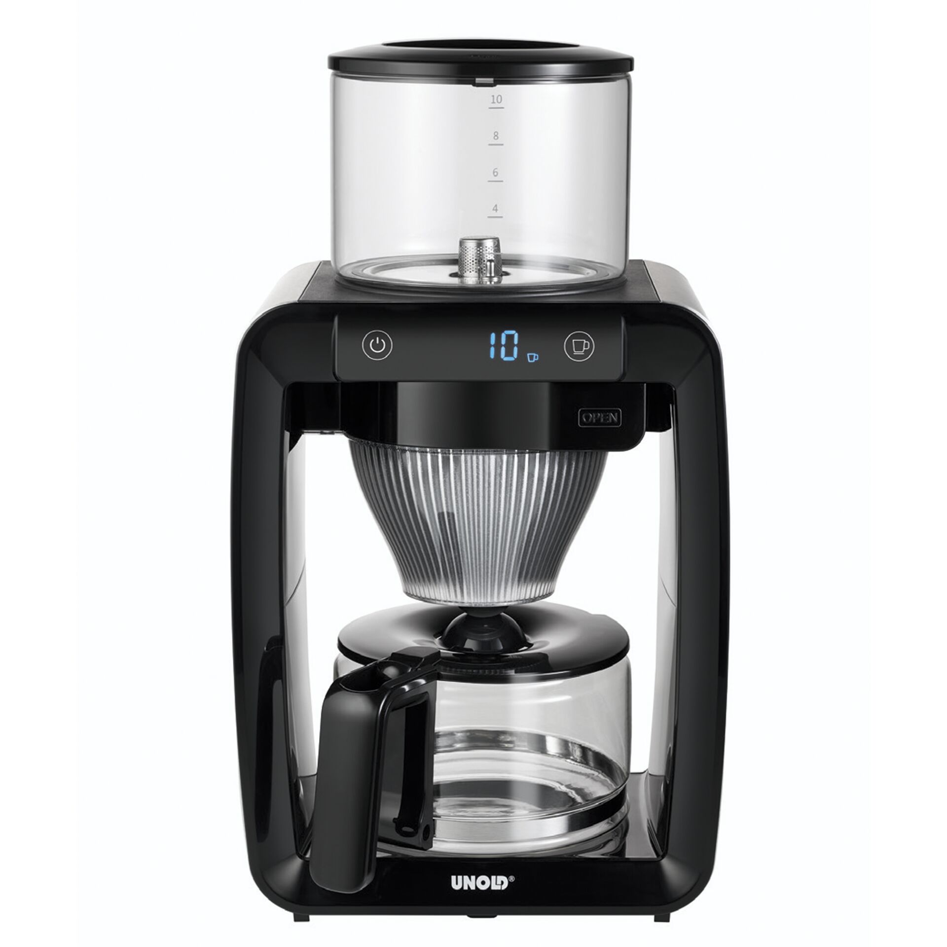 Die Filterkaffeemaschine Aroma von Unold bietet Ihnen die Möglichkeit, jeden Morgen köstlichen Kaffee mit gutem Geschmack zu genießen. Dank ihres einfachen Handlings können Sie die Anzahl der Tassen ganz nach Bedarf einstellen und auch restliches Wasser problemlos entfernen.