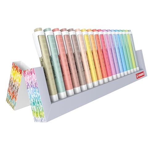 STABILO Textmarker swing cool NatureCOLORS - Tischset mit 18 verschiedenen FarbenAnti-Dry-Out-Technology, 2 Strichstärken