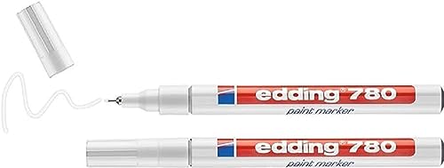 Der edding 780 Glanzlackmarker in Weiß bietet eine hohe Deckkraft und Haftung auf verschiedenen Materialien, was es ideal für kreative Projekte macht. Mit seiner extra-feinen Rundspitze von 0 ermöglicht er präzises Arbeiten und feine Linien.