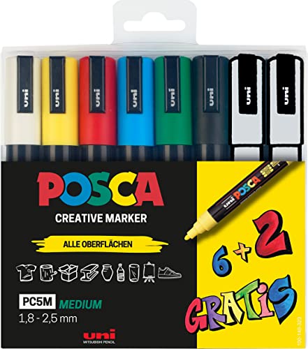 Das POSCA Marker Set von uni-ball bietet eine hohe Farbintensität und gute Sichtbarkeit auf verschiedenen Oberflächen. Die kräftigen Farben sind besonders gut sichtbar auf weißen und schwarzen Stoffen, wobei sie auch sehr gut auf Textilien haften. Durch die einfache Anwendung ohne Fixierung mit einem Bügeleisen eignet sich das Marker Set ideal für Kinder und alle, die kreativ sein möchten.