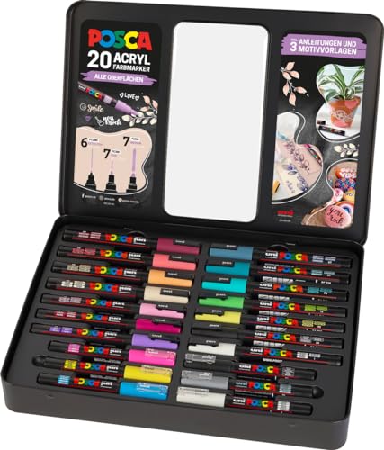 Enthält 20 Acrylmarker mit verschiedenen Spitzen, ideal für kreative Projekte auf diversen Oberflächen.
