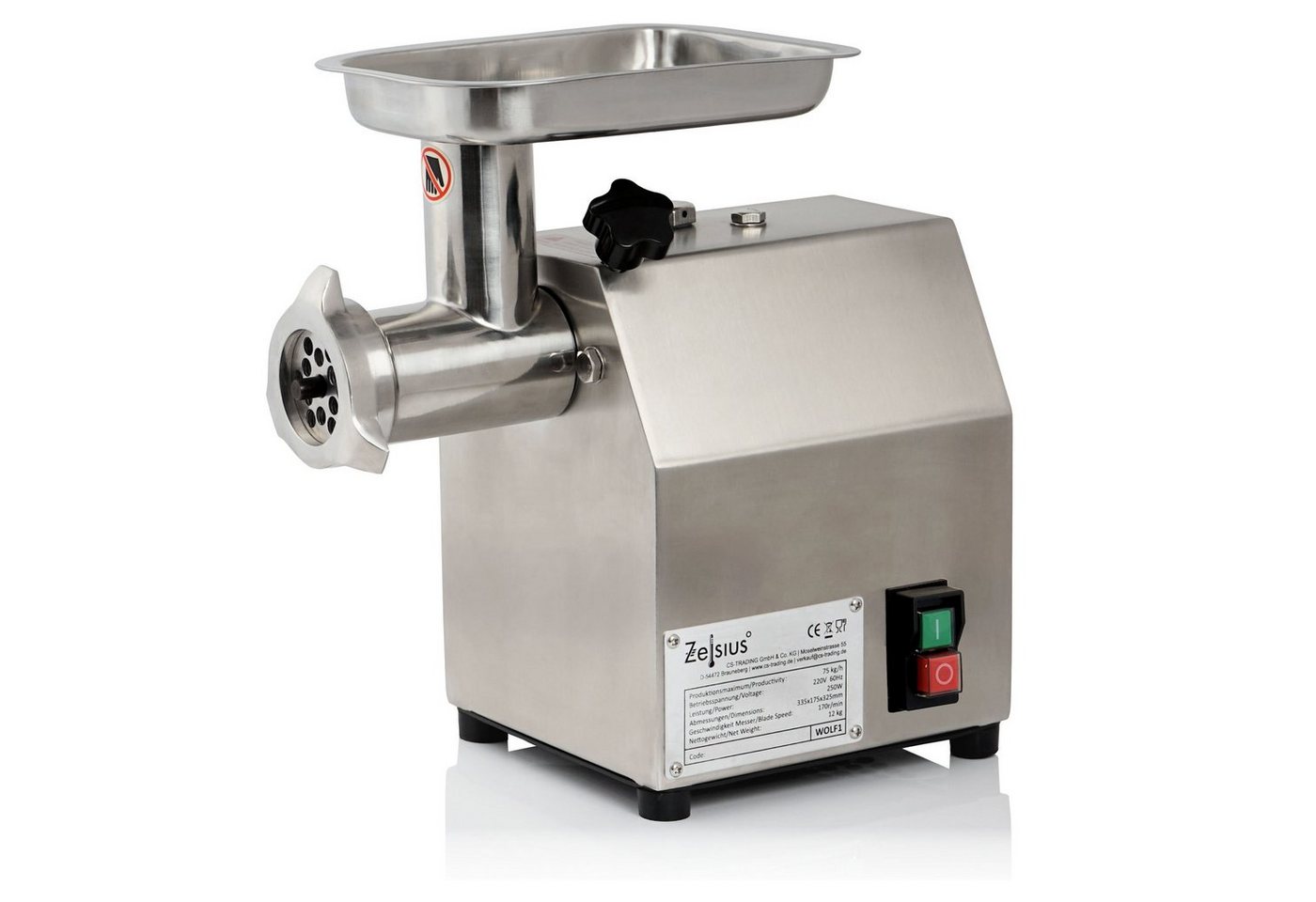 Das Produkt zeichnet sich durch eine hochwertige Verarbeitung aus Edelstahl aus, was nicht nur für Langlebigkeit und Hygiene sorgt, sondern auch einen Aluabrieb im verarbeiteten Fleisch verhindert. Die effiziente Leistung ermöglicht die einfache Verarbeitung von verschiedenen Fleischsorten, einschließlich sehnigem Material. Zudem arbeitet das Gerät leise und bietet hohe Standfestigkeit durch sein Gewicht, was zu einem angenehmen Nutzungserlebnis beiträgt.