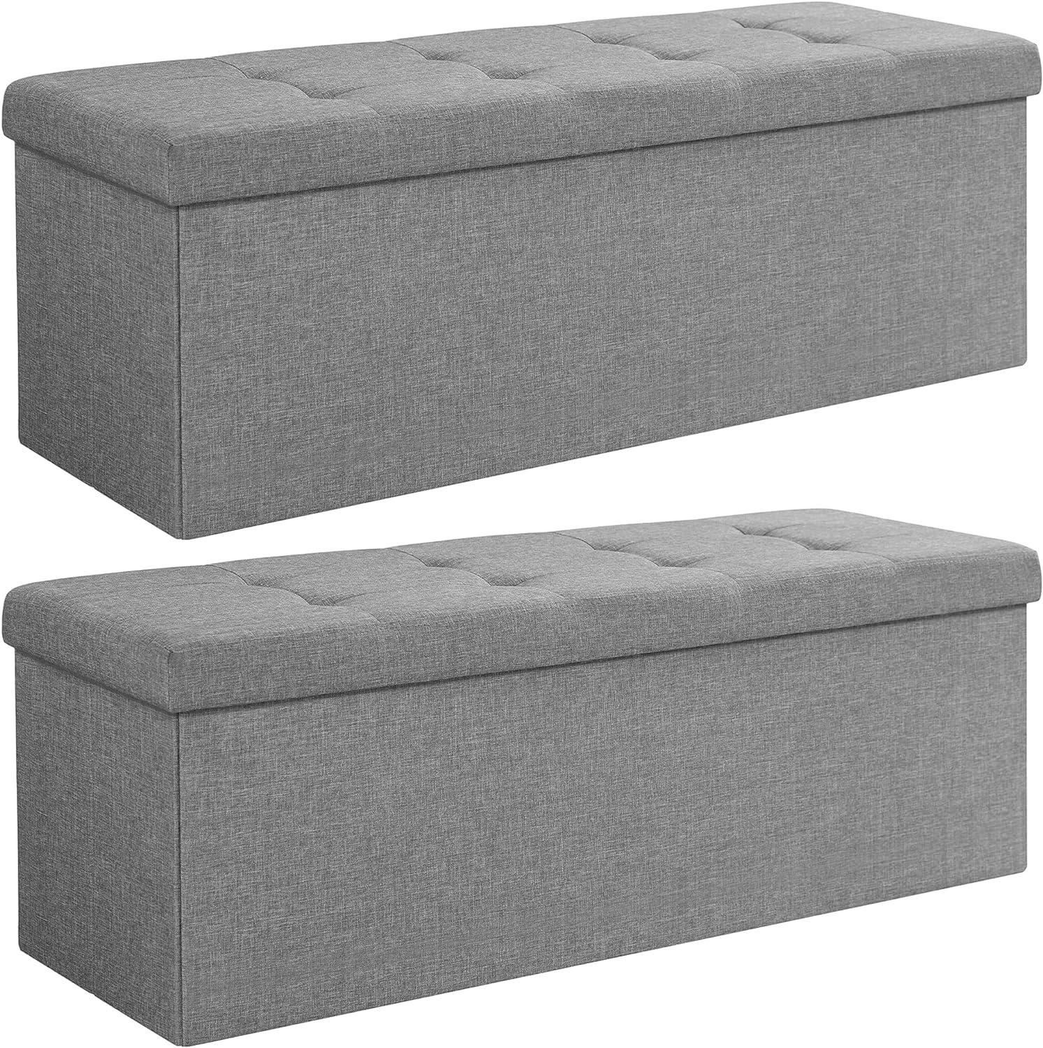 | Name | Sitzbank, 110 cm lang, Sitztruhe mit 120 L Stauraum, belastbar bis 300 kg, aus Leinen, hellgrau LSF77G |