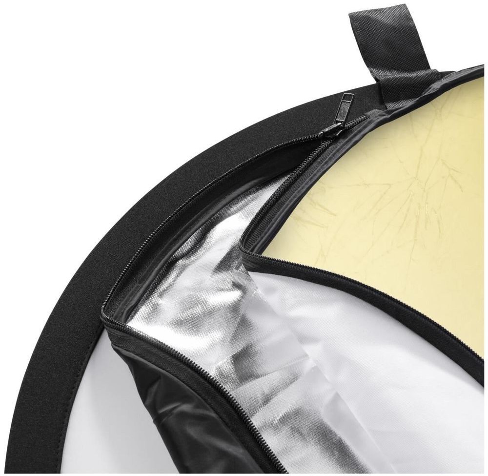 ... Der Walimex ist einen Tick besser verarbeitet, der größte Unterschied ist die gold/silber gemusterte Reflektorfläche, die bei hellem Sonnenlicht deutlich angenehmeres Licht zurückstrahlt als eine goldene Fläche. ...