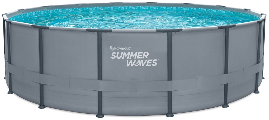 Beschreibung Der Summer Waves Elite Frame Pool ist ein runder Aufstellpool in Anthrazit mit den Abmessungen 488 x 488 x 122 cm. Er bietet eine Kombination aus Stabilität, Mobilität und Flexibilität. Dank des innovativen Snap-in Systems ist der Pool schnell aufgebaut. Die robusten Rahmenrohre aus Metall und die langlebige 3-lagige PVC-Polyester-Mix Poolfolie garantieren eine hohe Widerstandsfähigkeit. Der Pool bietet Platz für bis zu 7 Personen und sorgt für erfrischenden Badespaß im Sommer. **Highlights** - Besonders robuste Poolkonstruktion - Schneller Aufbau durch Snap-in Verfahren - Füllmenge bei 90 %: 19.858 Liter - Platz für bis zu 7 Personen - Mosaik Innenseite **Produkteigenschaften** - Rahmenrohre aus massivem Metall - Poolfolie aus 3-lagigem PVC-Polyester-Mix **Lieferumfang** - Skimmer Plus 2-in-1 Filterpumpe mit Abschöpftechnologie - Inkl. Filterpatrone - Einstiegsleiter - Abdeckplane - Bodenvlies - Deluxe-Reinigungsset