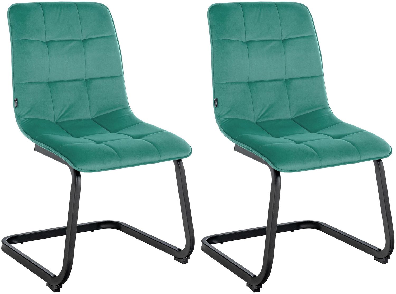 Der Esszimmerstuhl Vermont Samt in Grün vereint zeitloses Design mit hohem Sitzkomfort. Das moderne Freischwinger-Gestell aus robustem Metall und das gepolsterte Sitzpolster mit gestepptem Samt-Bezug sorgen für Bequemlichkeit. Mit einer Höhe von 87 cm, einer Breite von 47 cm und einer Tiefe von 58 cm bietet dieser Stuhl eine angenehme Sitzhöhe von 45 cm. Die Rückenlehne hat eine Höhe von 42 cm und der Stuhl ist bis zu 120 kg belastbar. **Highlights** - Modernes Freischwinger-Gestell aus Metall - Bequem gepolsterte Sitzfläche und Rückenlehne - Pflegeleichter gesteppter Samt-Bezug - Bodenschoner zum Schutz empfindlicher Böden - Max. Belastbarkeit: 120 kg **Produkteigenschaften** - Material: 100% Polyester, Metall - Maße: 87 x 47 x 58 cm (H x B x T) - Sitzhöhe: 45 cm, Sitzfläche: 47 x 44 cm - Rückenlehnenhöhe: 42 cm, Gewicht: 7 kg - Strapazierfähige und pflegeleichte Oberfläche **Lieferumfang** - 2x Esszimmerstuhl Vermont Samt - Ausschluss von optionalem Zubehör