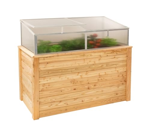 Bietet eine stabile Konstruktion aus FSC-zertifiziertem Lärchenholz mit optimaler Klimaregulierung für gesundes Pflanzenwachstum.