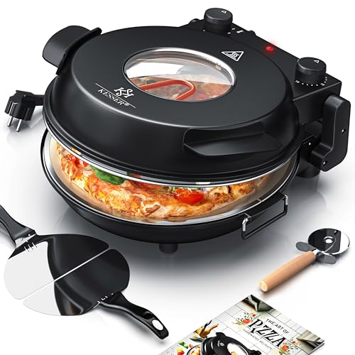 KESSER® Pizza-Ofen elektrisch bis 400 Grad | Elektrischer Pizzabäcker 1200W mit feuerfester Steinplatte & Timer Durchmesser 32cm | 5 Heizstufen & Sichtfenster | inkl. Pizzaschneider & Rezeptbuch