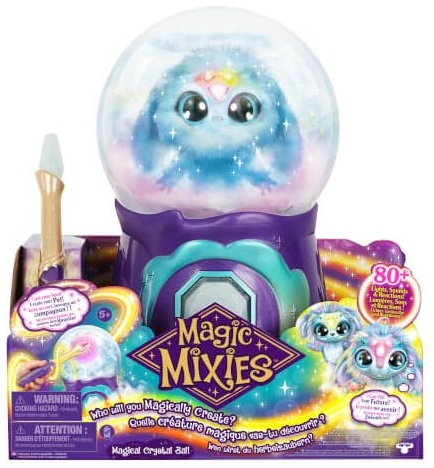 Der interaktive Zauberstab, die Kristallkugel und das Magic Mixie beinhalten gemeinsam über 80 Lichteffekte, Geräusche und Reaktionen. Lass Wunder wahr werden und zaubere dein magisches Haustier aus der Magic Mixies-Kristallkugel hervor. Dein neuer Freund kann sogar die Zukunft vorhersagen! Den magischen Kessel kennst du vermutlich bereits – jetzt haben die Macher von Magic Mixies eine neue Aufgabe für dich: Erprobe deine Zauberkräfte mit der magischen Kristallkugel. Zaubere dein eigenes wahrsagendes Magic Mixie hervor, indem du den Erschaffungszauber mit deinem interaktiven Leucht-Zauberstab ausführst. Entdecke, wie deine Kristallkugel auf die Bewegungen deines Zauberstabs reagiert. Für jeden Schritt des Erschaffungszaubers musst du die richtige Zauberstabbewegung beherrschen und die Zauberformel für diesen Schritt sprechen. Aktiviere zuerst die Kristallkugel und beschwöre dann echten magischen Nebel herauf. Danach kannst du deinem Magic Mixie seine Stimme und Farbe verleihen. Als Nächstes kannst du deinen neuen Freund die Kunst des Wahrsagens lehren und im Anschluss die Zauberformel „MAGICUS MIXUS" sprechen. So erweckst du dein Mixie zum Leben! Beobachte das Farbenspiel der Lichter und den Wechsel der Geräusche, während sich der magische Wandel im Inneren deiner Kugel vollzieht … und wenn sich der Nebel schließlich lichtet, erscheint dein Magic Mixie wie von Zauberhand. Entferne die Oberseite der Kristallkugel, um dein neues interaktives Plüschtier hervorzuholen. Sieh nur, wie niedlich es ist! Jetzt geht der Zauberspaß erst so richtig los: Nachdem du dein neues Haustier aus der Kristallkugel hervorgeholt hast, kannst du mithilfe deines Zauberstabs mit deinem Magic Mixie spielen. Führe verschiedene Zaubersprüche aus, probiere ein lustiges interaktives Spiel aus und lass dir von deinem niedlichen kleinen Freund die Zukunft vorhersagen. Kitzle dein Mixie, kümmere dich um ihn und beobachte seine Reaktionen. Schon bald wird euch beide eine magische Freundschaft verbinden. Du kannst deine Magic Mixies-Kristallkugel zurücksetzen, um den Nebelzauber in deiner Kristallkugel erneut zu erleben. So kannst du dein Magic Mixie oder andere Gegenstände in deinem Haus immer wieder enthüllen – deiner Magie sind keine Grenzen gesetzt! Mit der separat für deine Kristallkugel erhältlichen Nachfüllpackung für magischen Nebel kannst du den Zauber erneut wirken. Die Kristallkugel dient auch als Nachtlicht und begleitet dich auf eine zauberhafte Reise ins Land der Träume. In deiner Kristallkugel schlummert wahre Magie. Wen wirst du herbeizaubern?