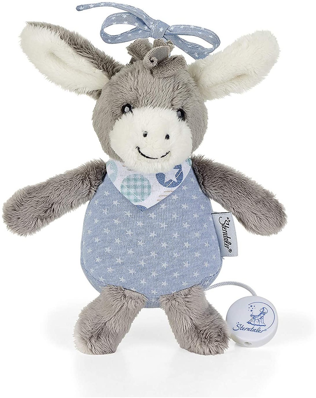 | Name | Sterntaler Spieluhr, Stofftier Esel Emmi, Integriertes Spielwerk, Größe: S, Hellblau/Grau |