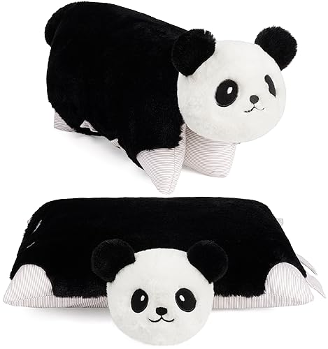 BRUBAKER Kuscheltier-Kissen Panda - 2 in 1 Plüschtier und Kuschelkissen 40 x 30 cm - Schwarz Weiß - aufklappbares Kinder Plüschkissen mit Klettverschluss