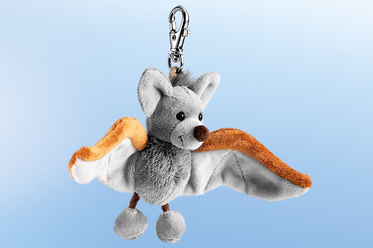 • Der Schaffer® Plüschanhänger Schlüsselanhänger Fledermaus Vampi ist ein 10 cm großes Kuscheltier in Grau
