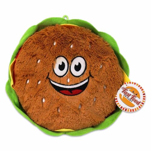• Dieses einzigartige Burger-Kuscheltier besticht durch sein niedliches Design mit gesticktem Smiley-Gesicht, das garantiert Freude bereitet