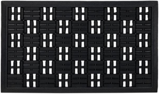 Die Gummi Fußmatte in Gitter-Optik 10039371 sorgt für einen sauberen Eingangsbereich. Mit ihrer Noppenstruktur wird das Abstreifen von Schmutz an Schuhsohlen zum Kinderspiel. Die rutschfeste und wetterfeste Matte eignet sich sowohl für den Innen- als auch Außenbereich und ist leicht mit Wasser zu reinigen. **Highlights** - Gitter-Optik für einen dekorativen Eingangsbereich - Rutschfest für sicheren Halt - Wetterfest und langlebig für den Außenbereich - Pflegeleicht und einfach zu reinigen - Noppenstruktur für effektives Abstreifen von Schmutz **Produkteigenschaften** - Maße (H x B x T): ca. 1 x 75 x 45 cm - Gewicht: ca. 2 kg - Material: Gummi - Farbe: Schwarz **Lieferumfang** - 1x Schmutzabtreter - Dekoartikel sind im Lieferumfang nicht enthalten