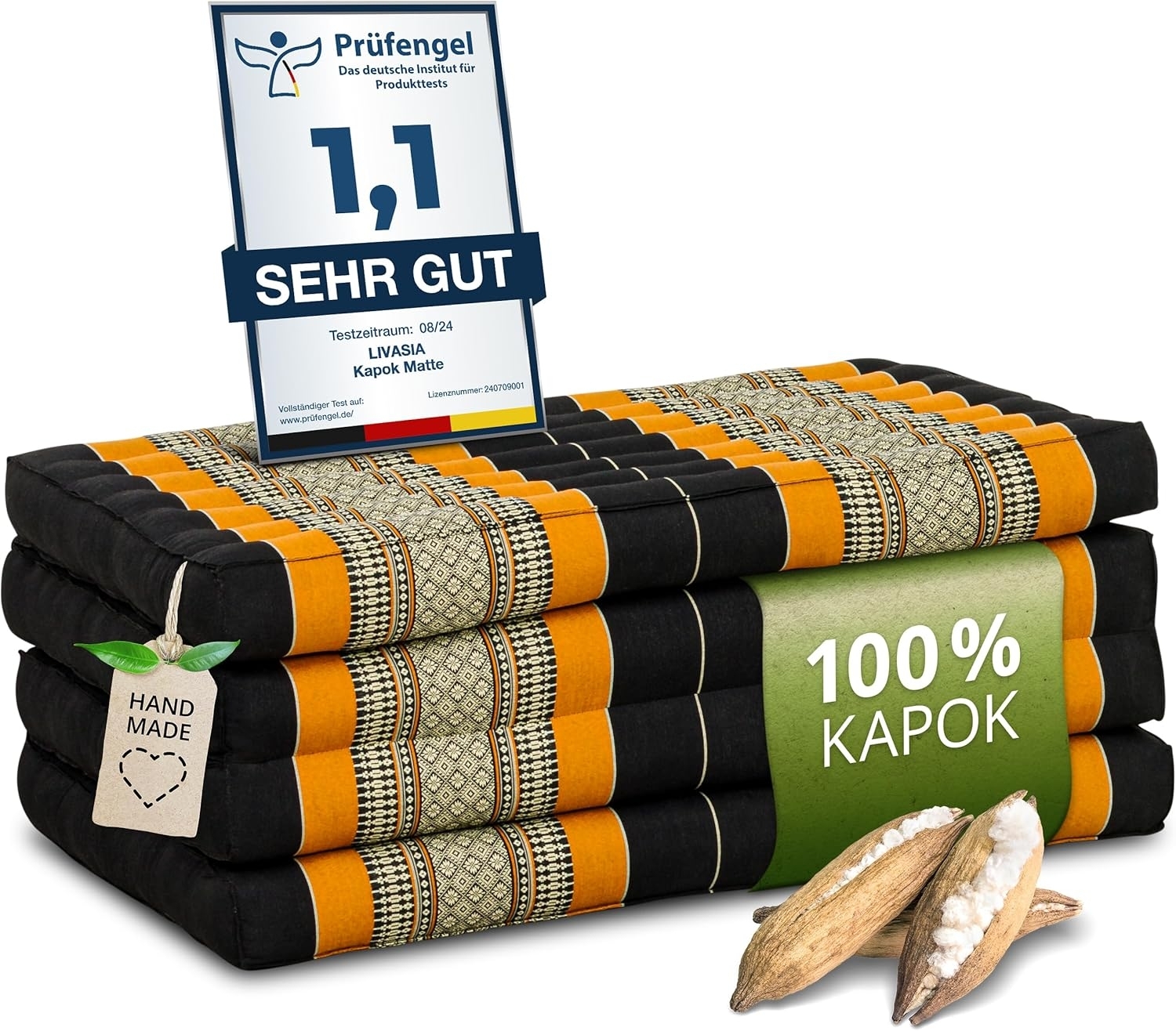 | Name | Klappmatratze Faltmatratze 80 cm (Classic) - 200 x 80 x 8 cm, livasia, 8 cm hoch, Kapok, vegan, handgefertigt |