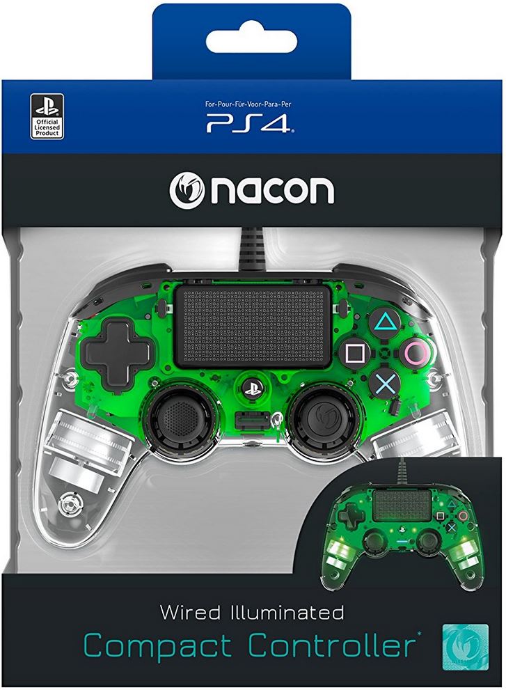 Der Nacon Wired Illuminated Compact Controller Transparent bietet eine preiswerte Alternative zu den Original-Controllern. Mit seiner grünen Klaroptik und den LEDs im Inneren ist er optisch ansprechend gestaltet. Das mitgelieferte Kabel kann je nach Bedarf als Vor- oder Nachteil empfunden werden.