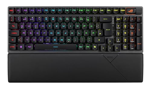 Optisch überzeugt die Tastatur mit einem hochwertigen, schwarzen Gehäuse und UV-beschichteten ABS-Tastenkappen, die den einzigartigen ROG-Stil unterstreichen. Mit einem Gewicht von 1.001 g und kompakten Abmessungen von 40 mm x 377 mm x 131 mm ist die Tastatur sowohl robust als auch platzsparend. Die ergonomische Handballenauflage aus Kunstleder unterstützt längere Nutzungssitzungen, auch wenn einige Nutzer anmerken, dass sie dicker und dichter sein könnte, um zusätzlichen Komfort zu bieten.
