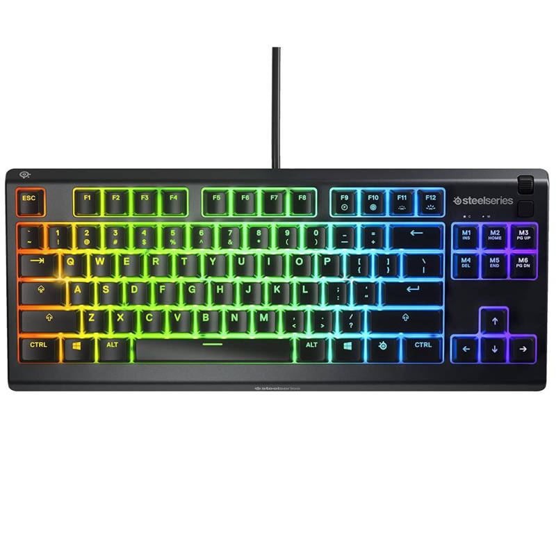 Die SteelSeries APEX 3 TKL Tastatur bietet ein komfortables Spielgefühl mit gutem Druckpunkt, jedoch ohne Klick, angenehmes Schreiben, viele Programmiermöglichkeiten, aber keine Profile, und dimmbare Beleuchtung, aber unkomfortables Neigen, ohne Handballenauflage. - zusammengefasst durch die Testsieger.de-Redaktion