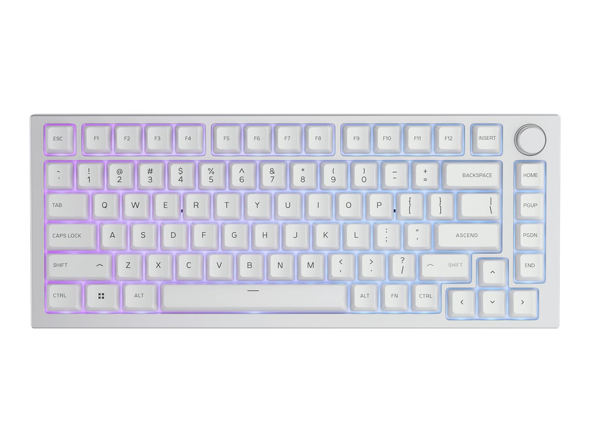 Die GMMK Pro White Ice 75% TKL Tastatur - Barebone von Glorious PC Gaming Race bietet eine hochwertige Verarbeitung, Stabilität und ein schönes Design. Mit angemessenem Gewicht und guter Beleuchtung ist sie einfach zu bedienen. Zudem ermöglicht sie Modding und Anpassungen nach individuellen Vorlieben.