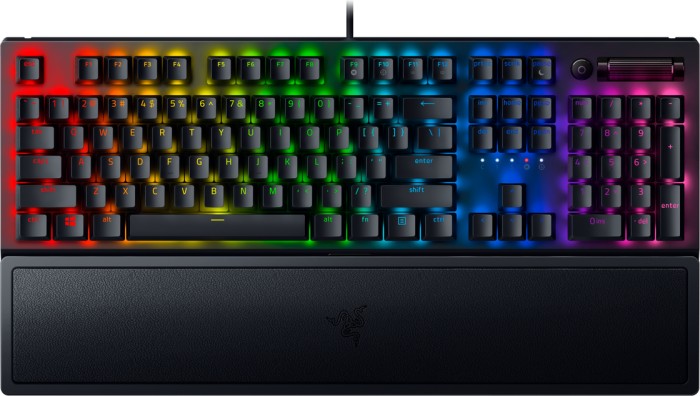 Die Razer BlackWidow V3 ist eine solide mechanische Tastatur mit gutem Schreibgefühl und individuell einstellbarer Beleuchtung. Die Klick-Geräusche der grünen Switches sind jedoch sehr laut und die Handballenauflage ist schlecht verarbeitet und rutscht leicht ab.