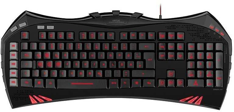 Die Speedlink Virtuis hat für eine Gaming-Tastatur aus diesem Preissegment sehr viel an Board. Nicht nur äußerlich macht sie dank Beleuchtung in verschiedenen Modi etwas her, auch ihre inneren Werte können überzeugen. Anti-Ghosting, 10-Key-Rollover, 11 Makro-Tasten, 5 Profile und 84 umprogrammierbare Tasten. Das ist eine saubere Ausstattung. [...]