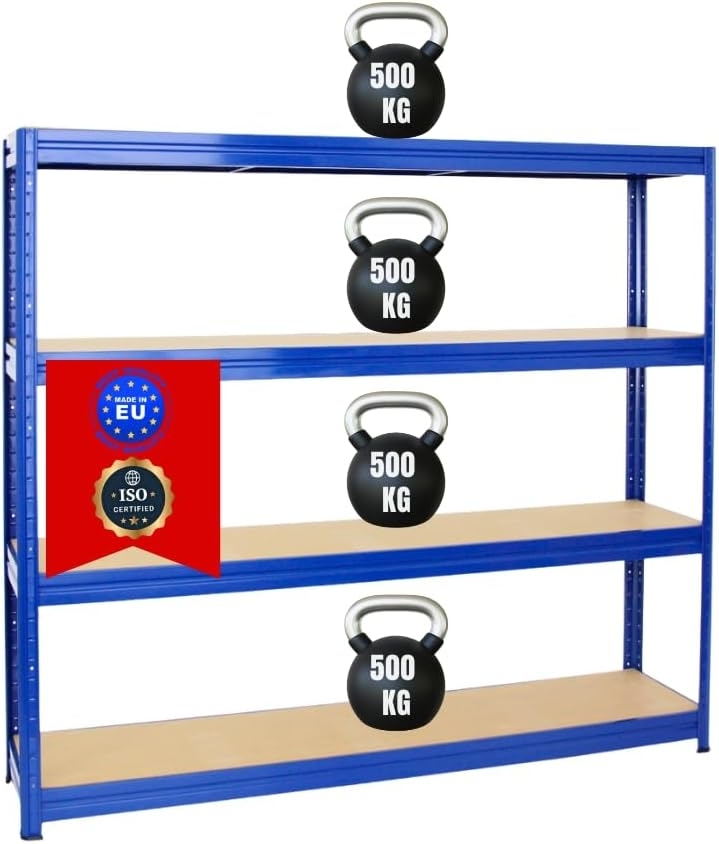 | Name | PROREGAL Schwerlastregal Dino Extra Breit 180 x 200 x 45 cm Fachlast 500kg Blau, Garagenregal, Lagerregal, Steckregal, Weitspannregal |