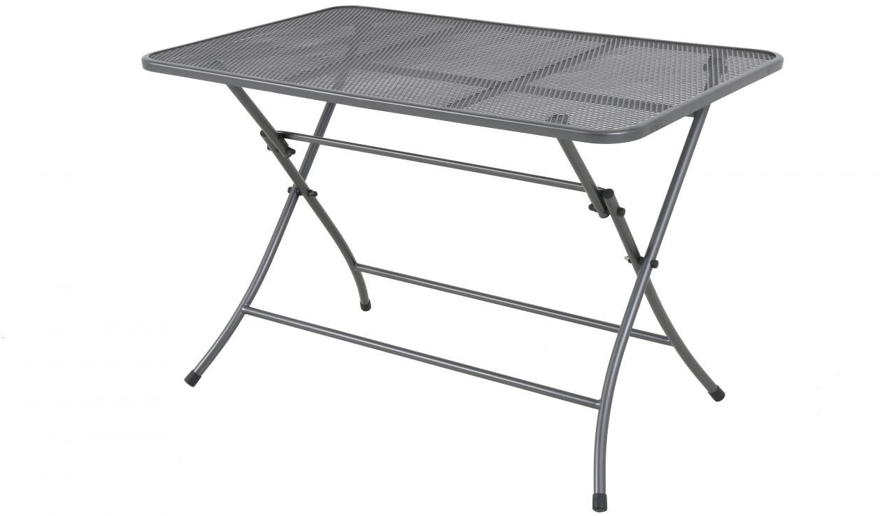 Dieser kleine Gartentisch ist ideal für die Verwendung auf dem Balkon oder als Beistelltisch. Durch die Klappfunktion ist der Tisch schnell platzsparend verstaubar. klappbar, Material: Streckmetall, witterungsbeständig, Maße: 110 x 70 cm, Höhe: 72 cm, Farbe: eisengrau