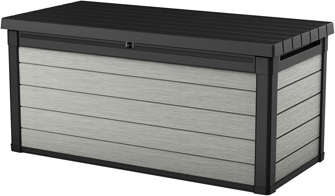 Die Keter Garten-Aufbewahrungsbox Denali 570L in Anthrazit kombiniert eine robuste Doppelwandkonstruktion mit einem eleganten Design. Mit einem Volumen von ca. 570 Litern bietet sie vielseitigen Stauraum für Gartenutensilien, Sitzpolster und Freizeitzubehör. Die Box dient zudem als bequeme Sitzgelegenheit für zwei Personen und ist mit einer Gasdruckfeder ausgestattet, die ein leichtes Öffnen ermöglicht. Ihre pflegeleichte Oberfläche und die hohen Innenmaße von 142,8 x 63,4 x 63,9 cm garantieren Stabilität und Benutzerfreundlichkeit. **Highlights** - Robuste Doppelwandkonstruktion für hohe Stabilität - Wetter- und UV-beständig für langfristige Nutzung - Zusätzliche Sitzfläche für zwei Personen - Gasdruckfeder für müheloses Öffnen - Möglichkeit zur Anbringung eines Schlosses für zusätzliche Sicherheit **Produkteigenschaften** - Volumen: ca. 570 Liter - Innenmaße (HxBxT): 142,8 x 63,4 x 63,9 cm - Pflegeleichte Oberfläche **Lieferumfang** - Keter Garten-Aufbewahrungsbox Denali 570L Anthrazit - Schloss nicht enthalten