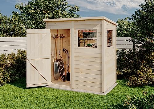 Storehaus Geräteschuppen Stefano S mit PultdachGartenhaus klein B 186 x T 126 cm, Gerätehaus aus Fichtenholz inkl. Fundamentrahmen, 2,34 m² Grundfläche, Nut-und-Feder-Bauweise, 12 mm Wandstärke